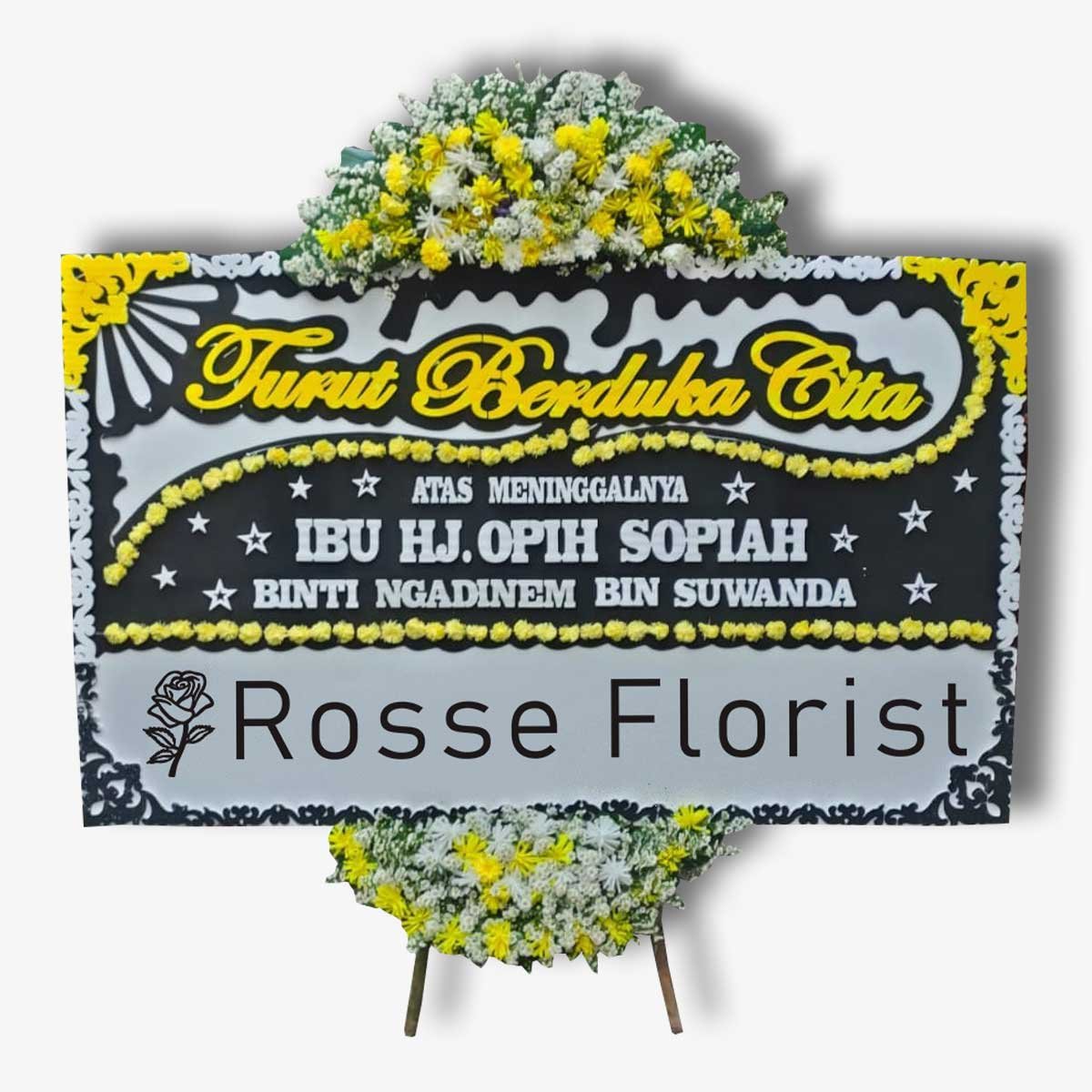 - Desain rangkaian bunga papan di Website Rosse Florist hanya dapat dikirimkan Ke Area Cirebon