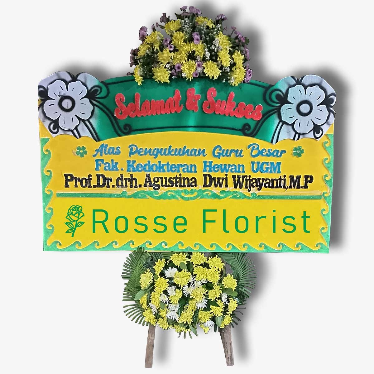 - Desain rangkaian bunga papan di Website Rosse Florist hanya dapat dikirimkan Ke Area Yogyakarta